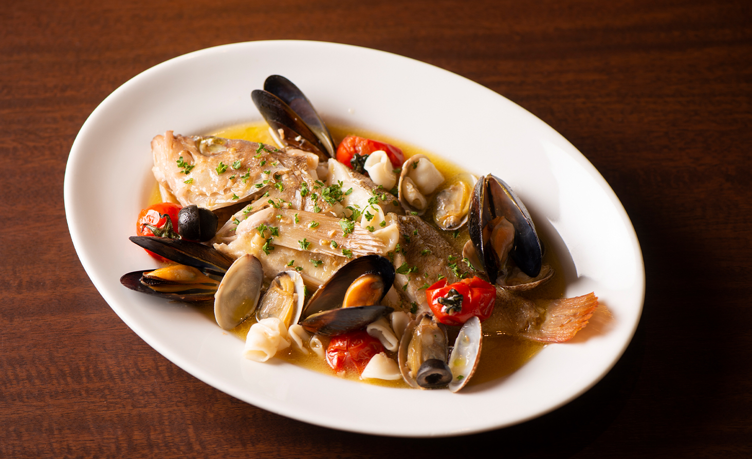EKAでご提供するお料理は、フレンチ出身のシェフが手掛けるイタリアンフレンチ。前菜からスイーツまで、トータルプロデュースしています。