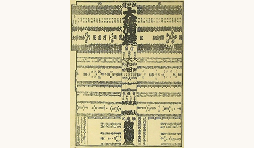相撲や芝居の番付の体裁に倣って出版された蒲焼屋の番付「江戸前大蒲焼」に「浅草 前川」が掲載される。