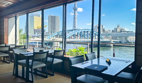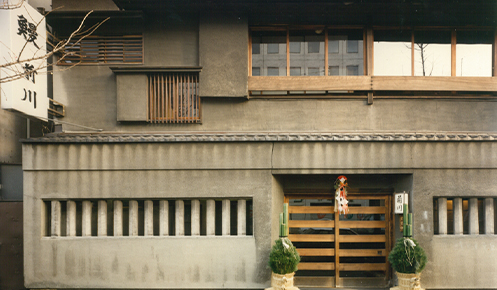 五代目 公一がこれからの車社会を見通し、江戸通り沿いに店舗を再建。川からはやや離れていたが、窓からはこれまで通り隅田川を望むことができた。 -